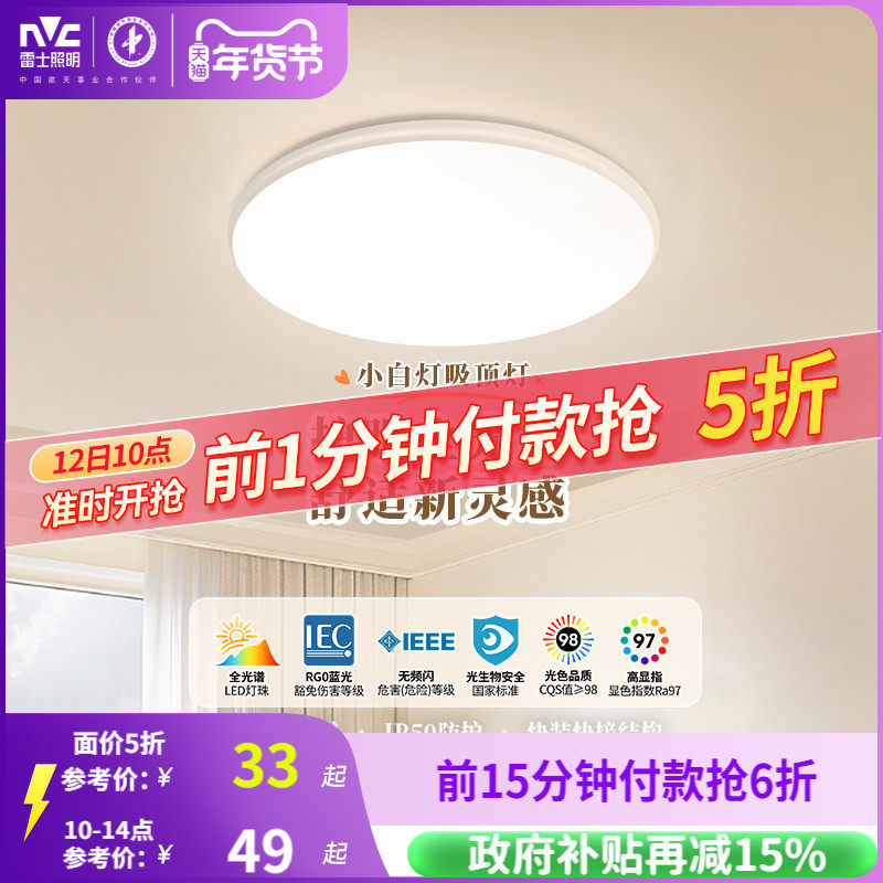 雷士照明小白灯全光谱护眼吸顶灯客厅卧室灯阳台灯2025新款全屋灯