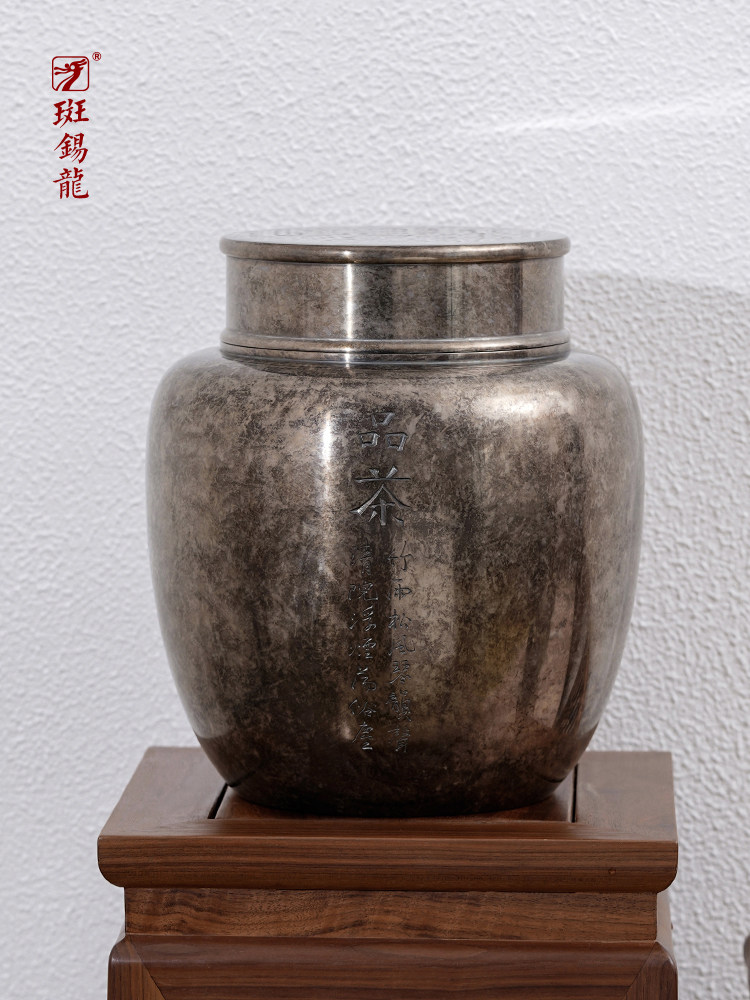 斑锡龙锡罐礼遇茶仓纯锡茶叶罐中号双盖密封储茶罐茶叶送礼盒高档