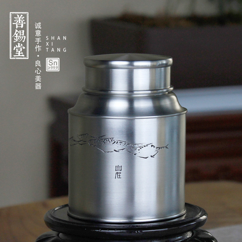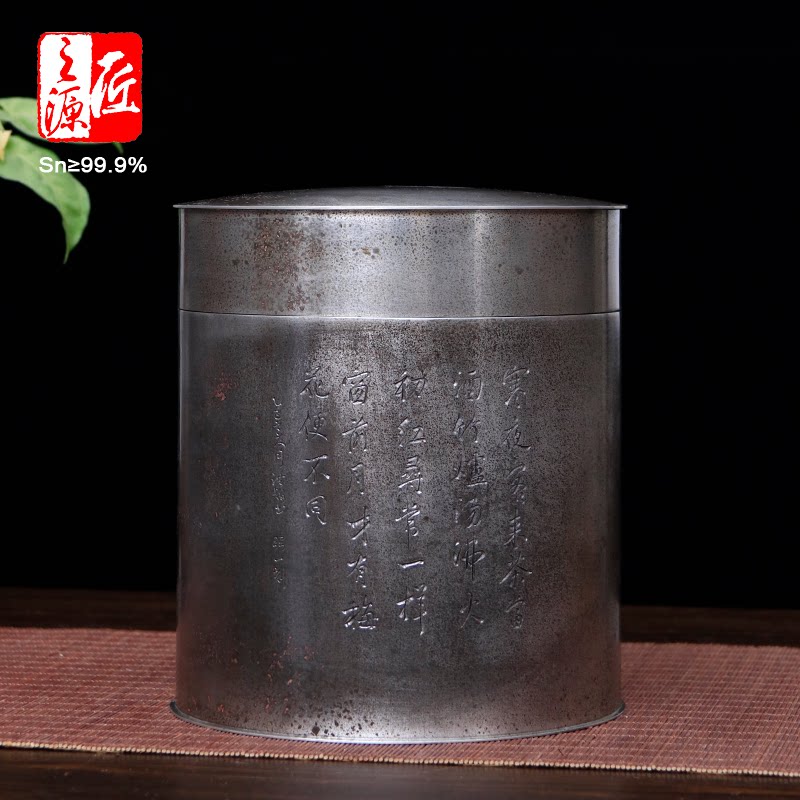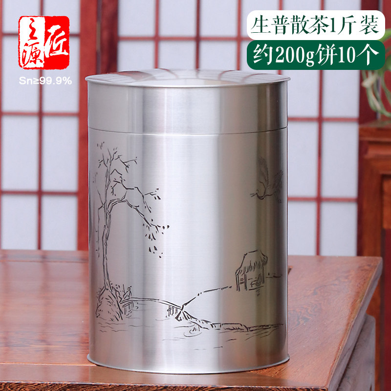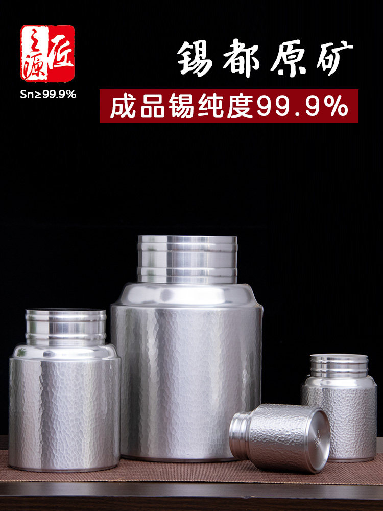 锡罐茶叶罐纯锡罐永龙锡茶罐大号茶叶锡罐家用小号保鲜罐圆形茶叶