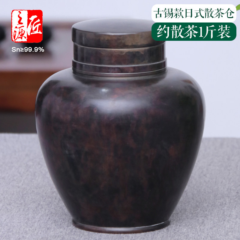 古锡款茶仓个旧999纯锡茶叶罐复古做旧储茶罐1斤茶叶装素面锡茶罐