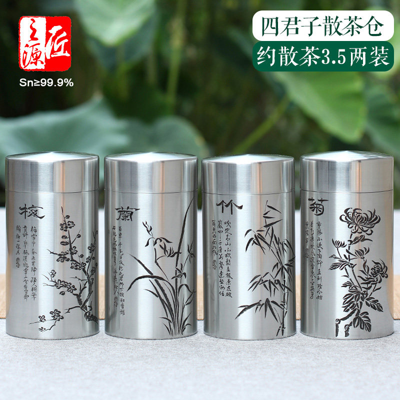 锡都云南个旧手工99.9%纯锡锡罐锡器锡茶叶罐纯锡茶罐手刻四君子