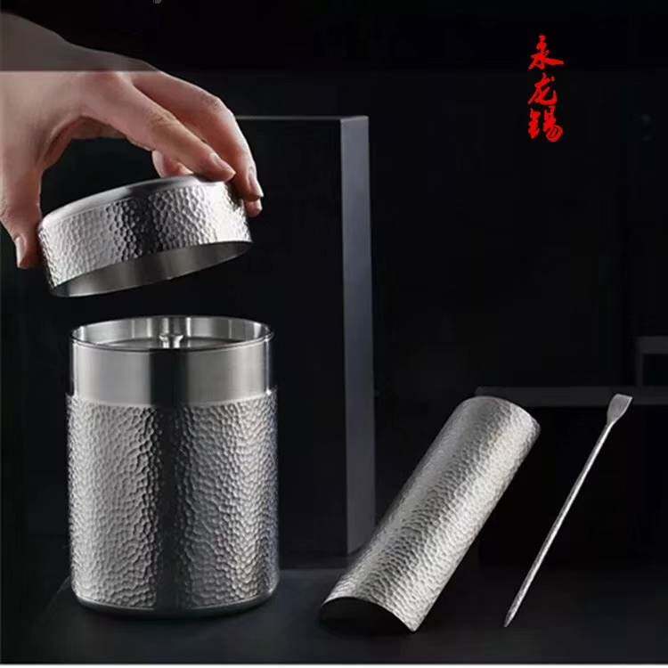 999纯锡茶罐锡罐铁器超大锡茶罐锡罐手工大尺寸经典定制锤图案