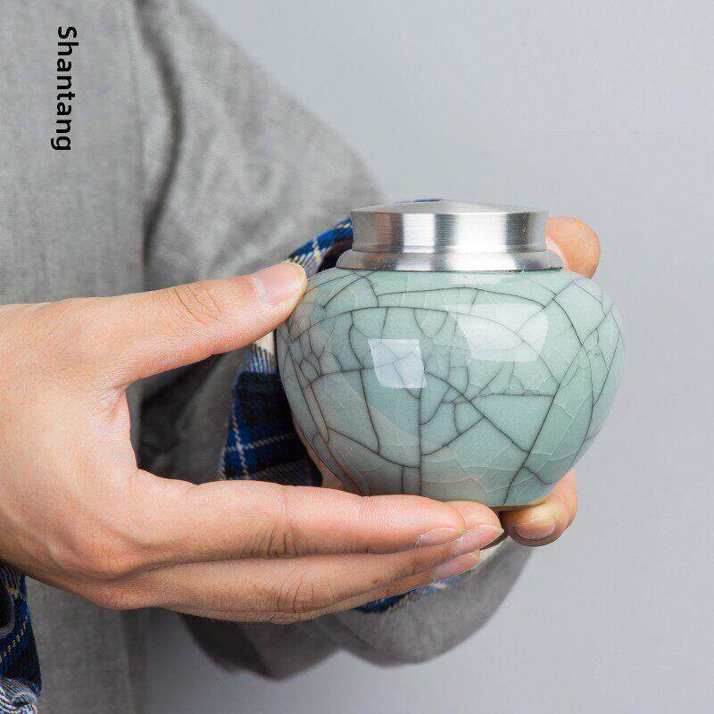 古韵青瓷茶叶罐紫砂汝窑普洱茶锡仿布密封茶叶罐陶瓷铜环茶罐储存