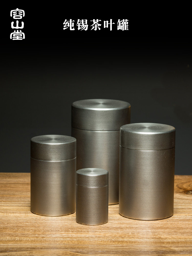 容山堂锡罐茶叶罐纯锡储存罐茶罐旅行茶具便携小号锤纹高档密封罐