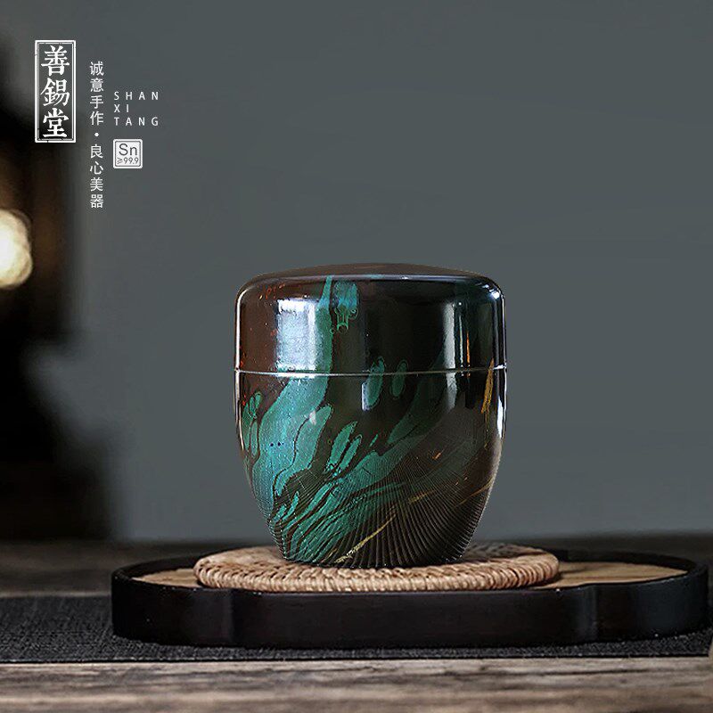 【限量特惠款】斑锡龙锡罐 冠玉茶仓彩漆 纯锡茶叶罐密封储茶罐