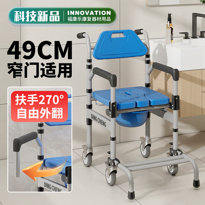 轮椅老人专用带坐便可洗澡窄门款残疾人座便椅结实带轮护理沐浴椅