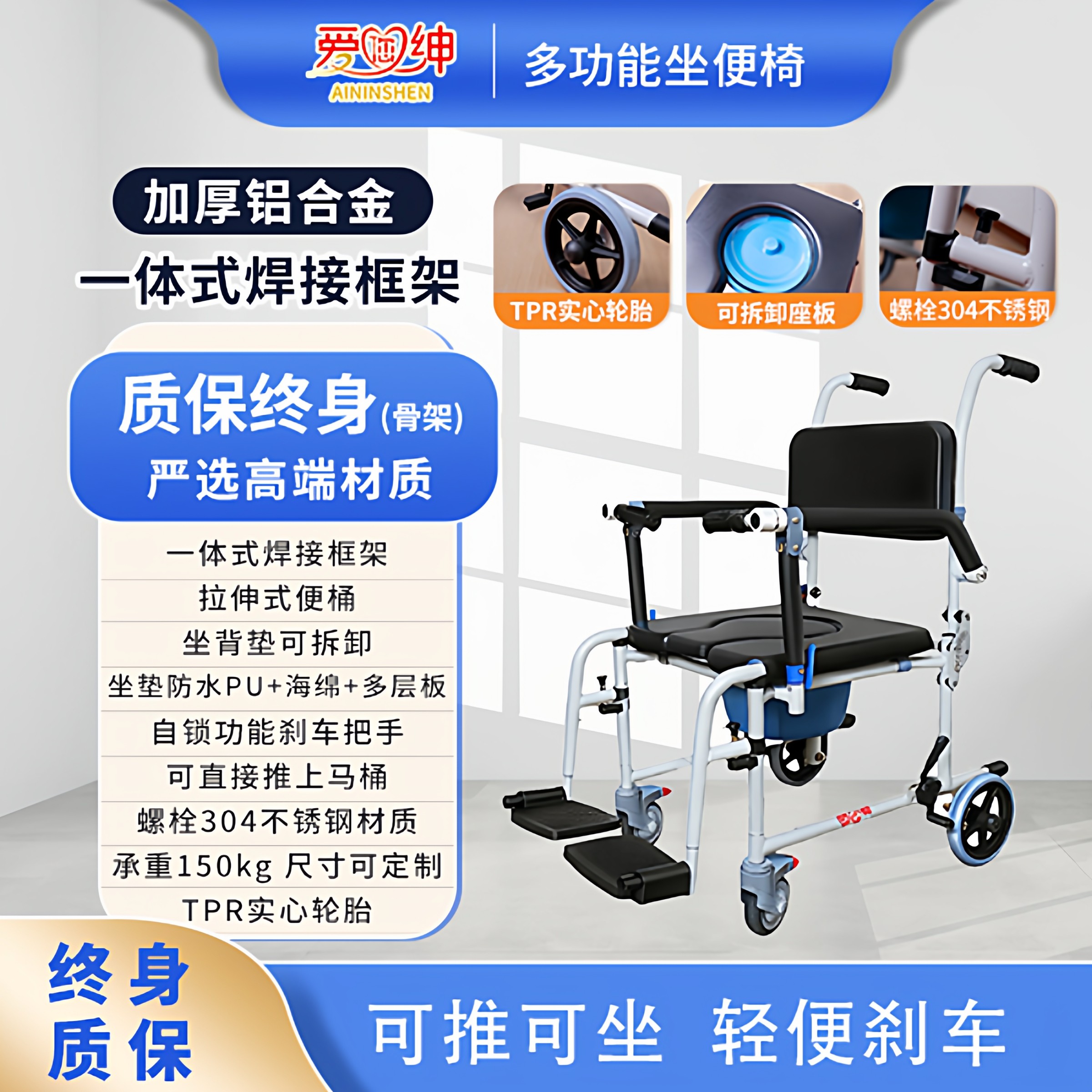 爱您绅老人洗澡轮椅多功能家用坐便轮椅移动椅带轮扶手老人如厕椅