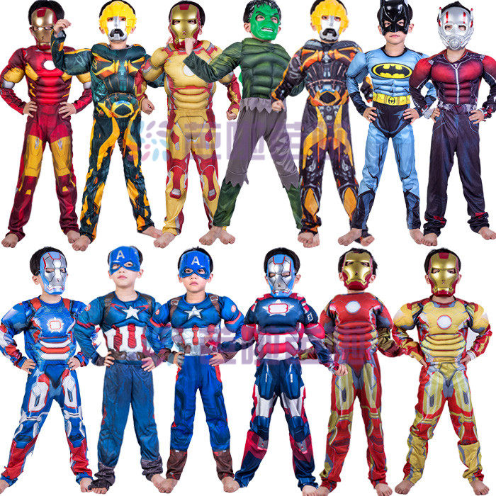 钢铁侠儿童套装擎天柱变形金刚肌肉服圣诞节美国队长男孩演出衣服