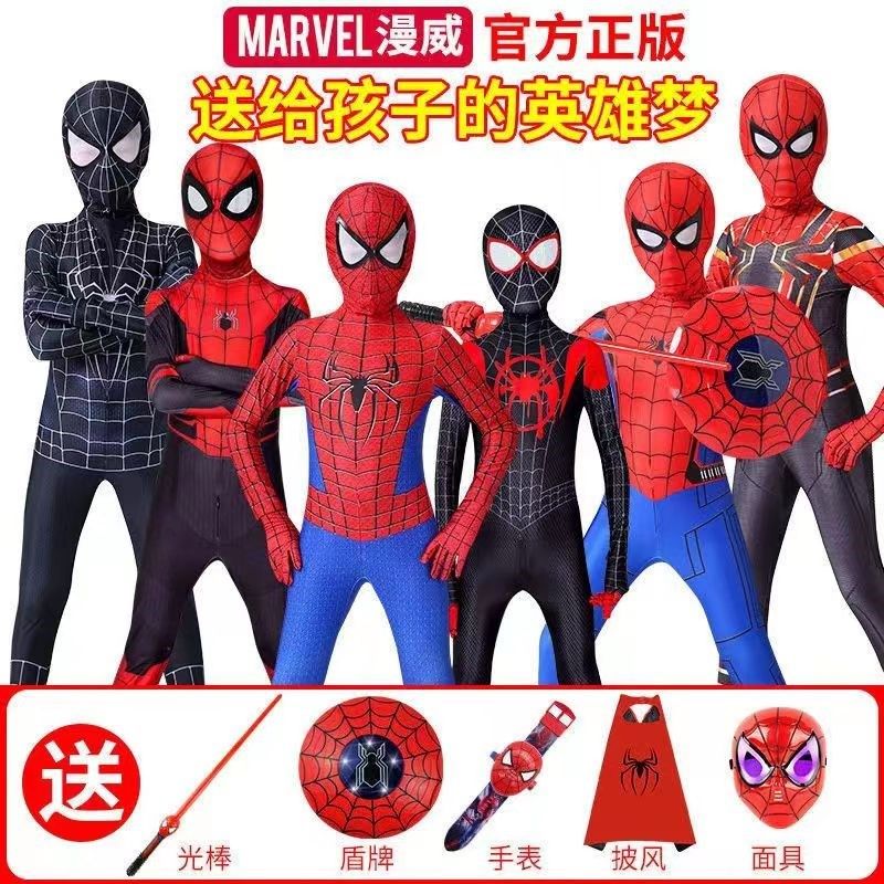 蜘蛛侠连体紧身衣男孩套装钢铁迈尔斯新动漫发光剑cos服长袖新款