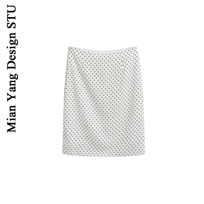 棉洋 气质波点高腰包臀半身裙 美式高级感后开叉显瘦中裙复古短裙