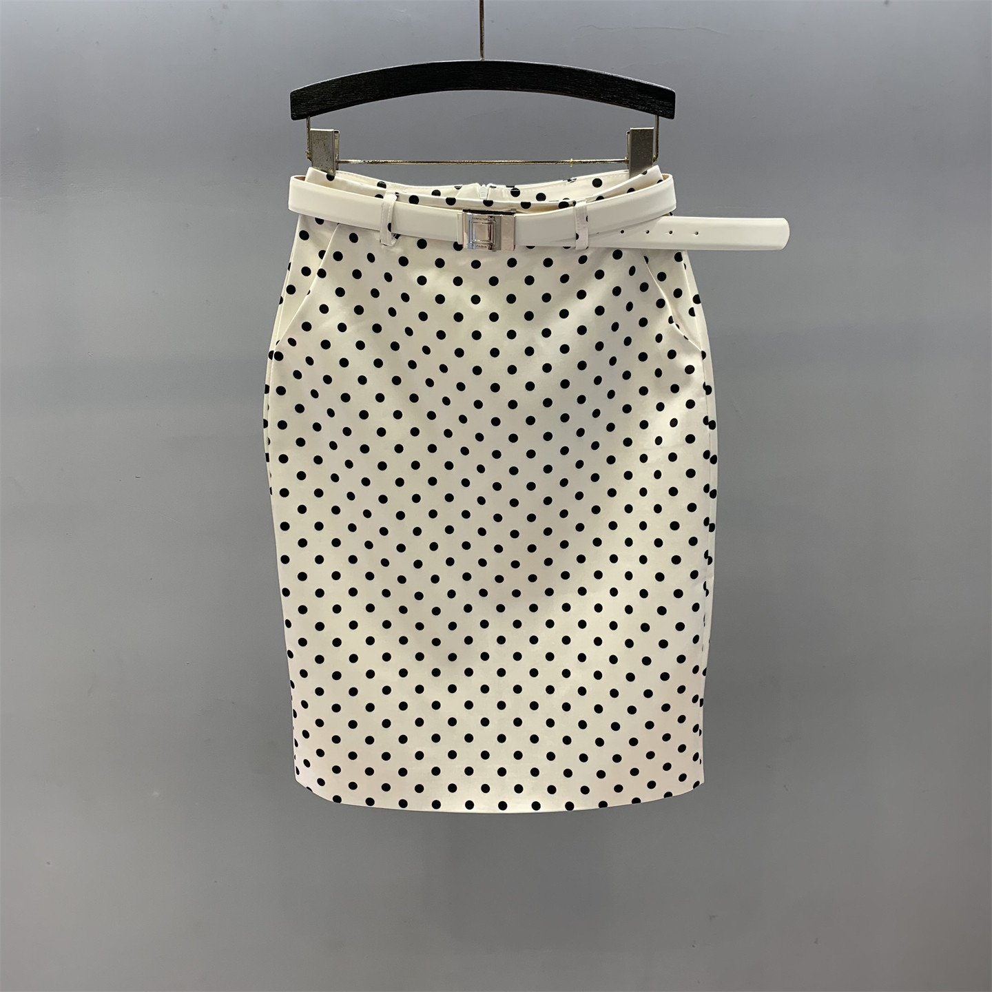 白色波点半身裙女2026春夏新款简约气质包臀开叉一步裙女直筒中裙