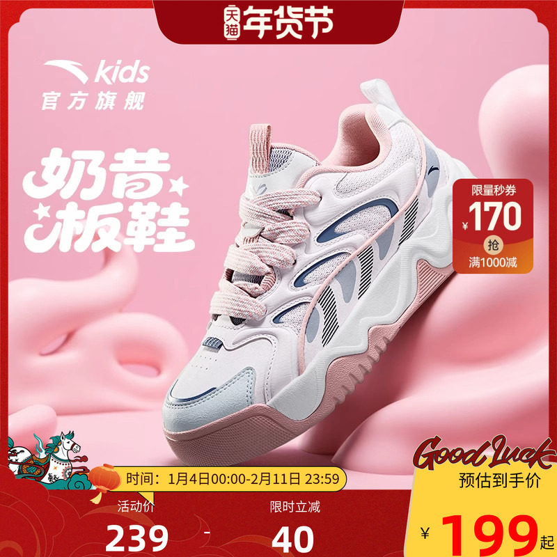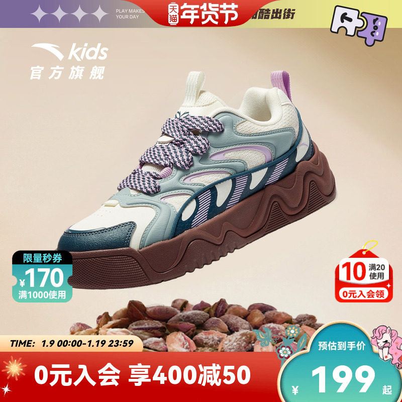 奶昔丨安踏儿童板鞋女童鞋2025秋冬新款复古厚底低帮板鞋滑板鞋