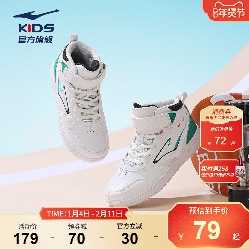 鸿星尔克童鞋儿童鞋子高帮运动鞋小白鞋男童休闲鞋大童板鞋滑板鞋