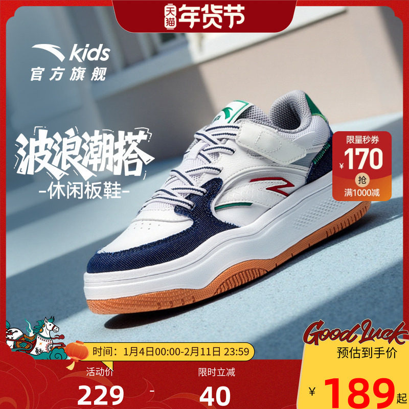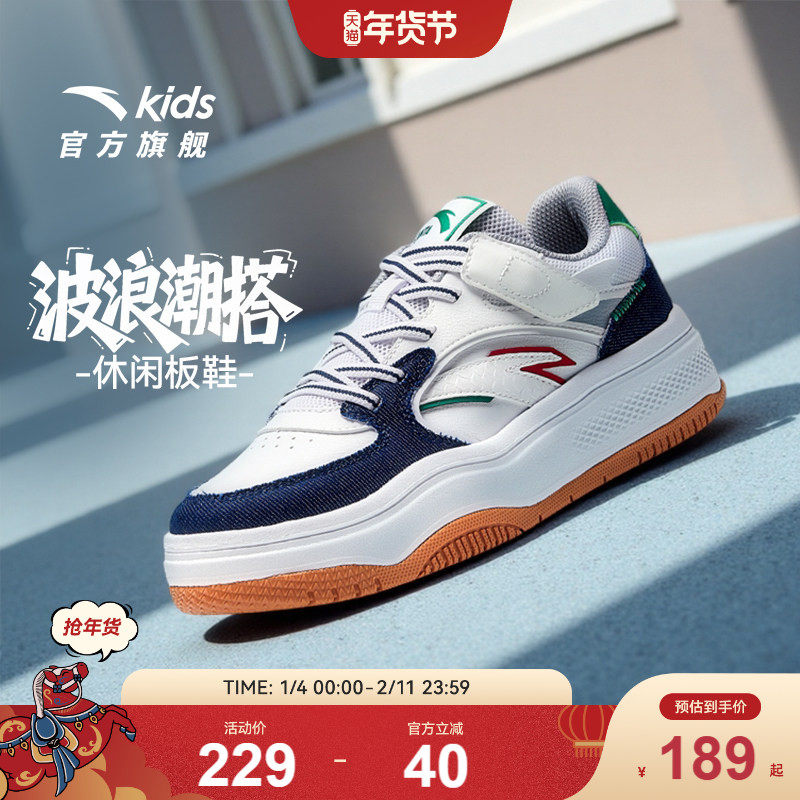 安踏儿童男大童板鞋2025秋冬款学生校园小白鞋女童低帮板鞋滑板鞋