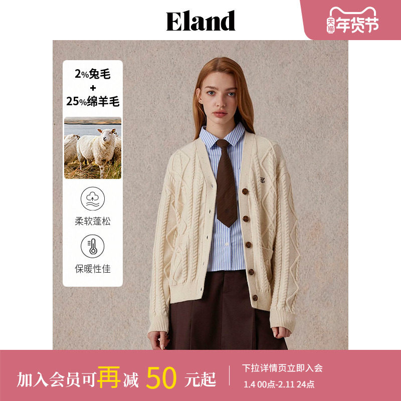 辰米范 温柔底牌 麻花v领毛衣开衫女秋冬慵懒宽松中长款针织外套