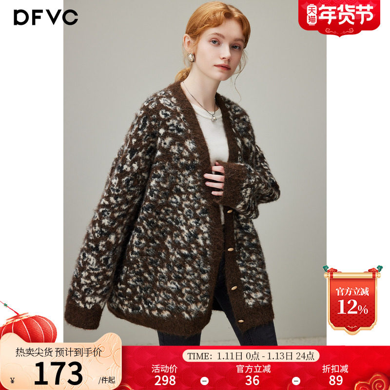 dfvc复古慵懒风绵羊毛针织衫女2025年冬季新款中长款V领开衫毛衣