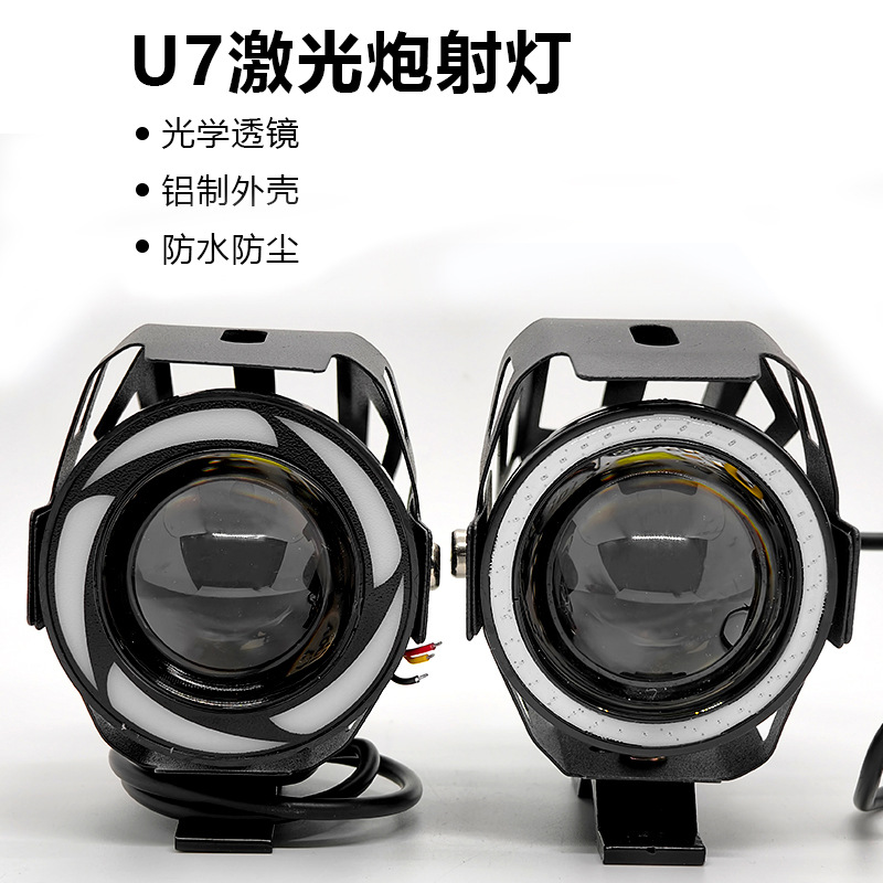 摩托车前照灯射灯改装通用电动车汽车U7激光炮LED大灯恶魔眼爆闪