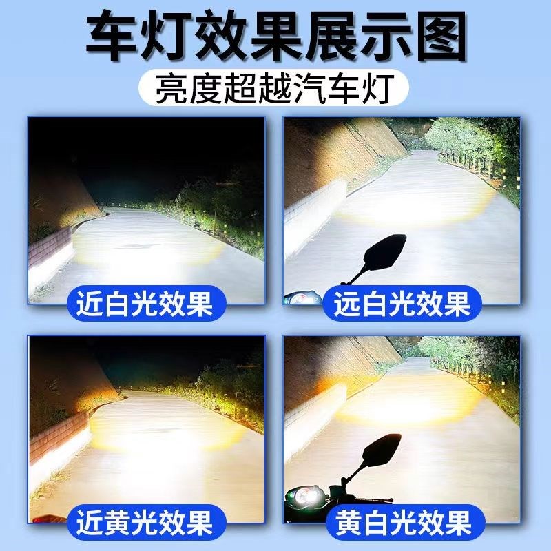 摩托车电动车强光led射灯黄白双光远近一体爆闪灯激光灯改装车灯