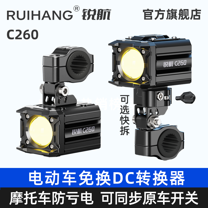 锐航C260摩托车电动车外置踏板专用激光射灯强光款远近光透镜射灯