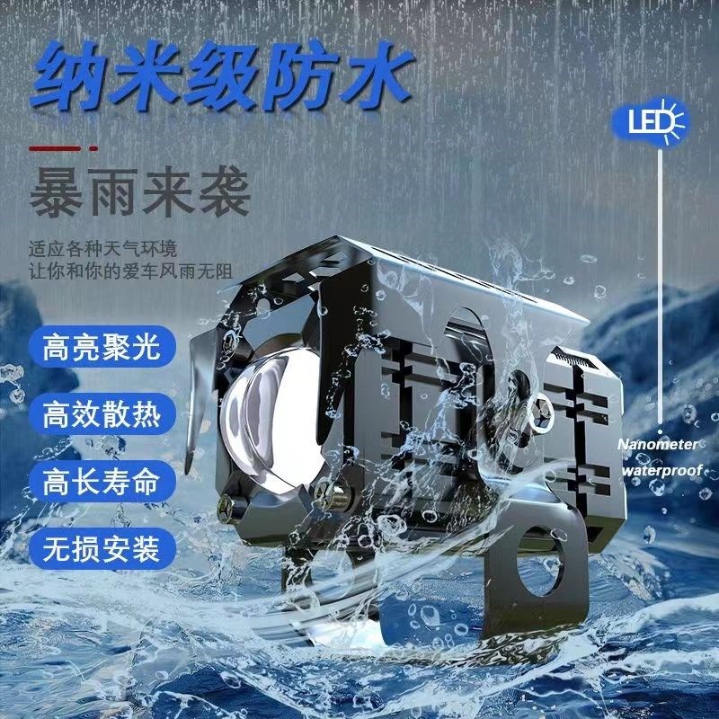 透镜摩托车射灯电动车led辅助灯高亮强光激光改装铺路远近爆闪灯