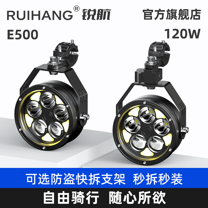 锐航E500摩托车铺路射灯摩托车外置专用激光射灯强光款远近光射灯