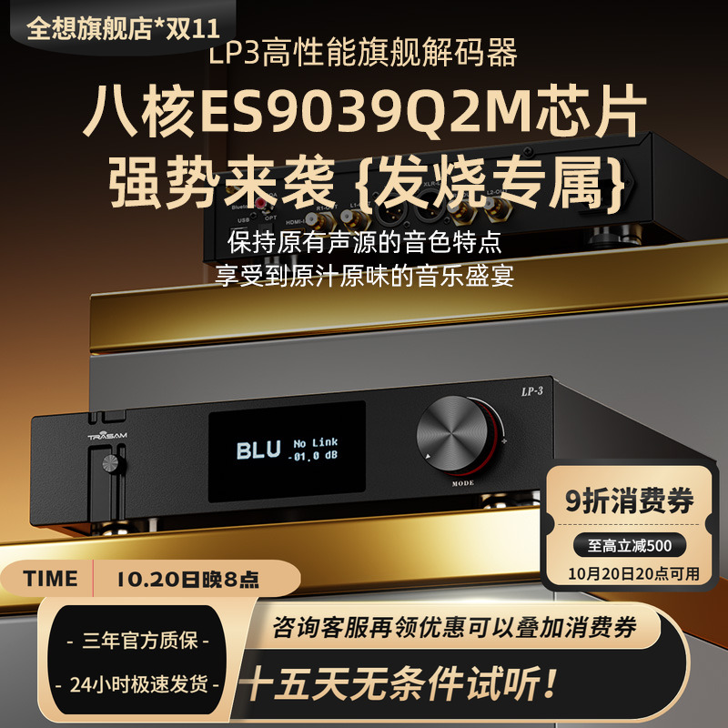 全想LP3蓝牙解码器hifi发烧级DAC音频8核9039q2m高音质解码器5.4