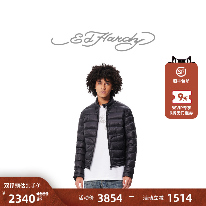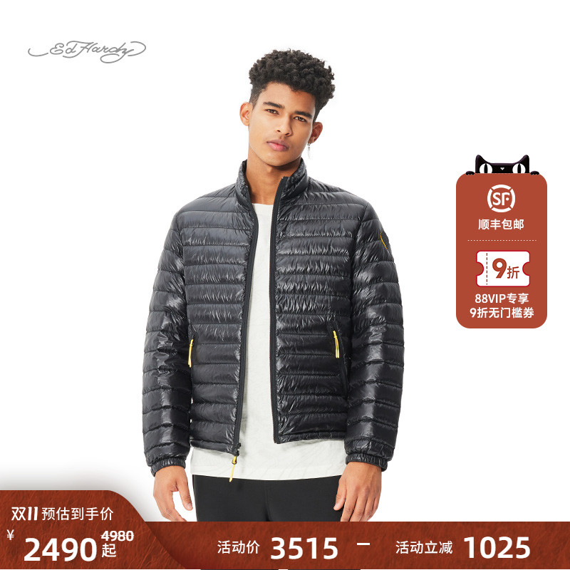 Ed Hardy埃德哈迪冬季新款男士合身轻薄白鹅绒保暖羽绒服外套