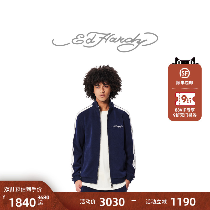 Ed Hardy埃德哈迪冬季新款男士拉链衫开衫卫衣学院风夹克外套