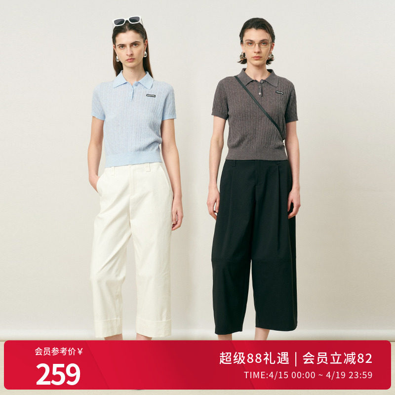 【肌理绞花Polo】婉甸2026夏季新品女短袖高智感亚麻毛针织套头衫