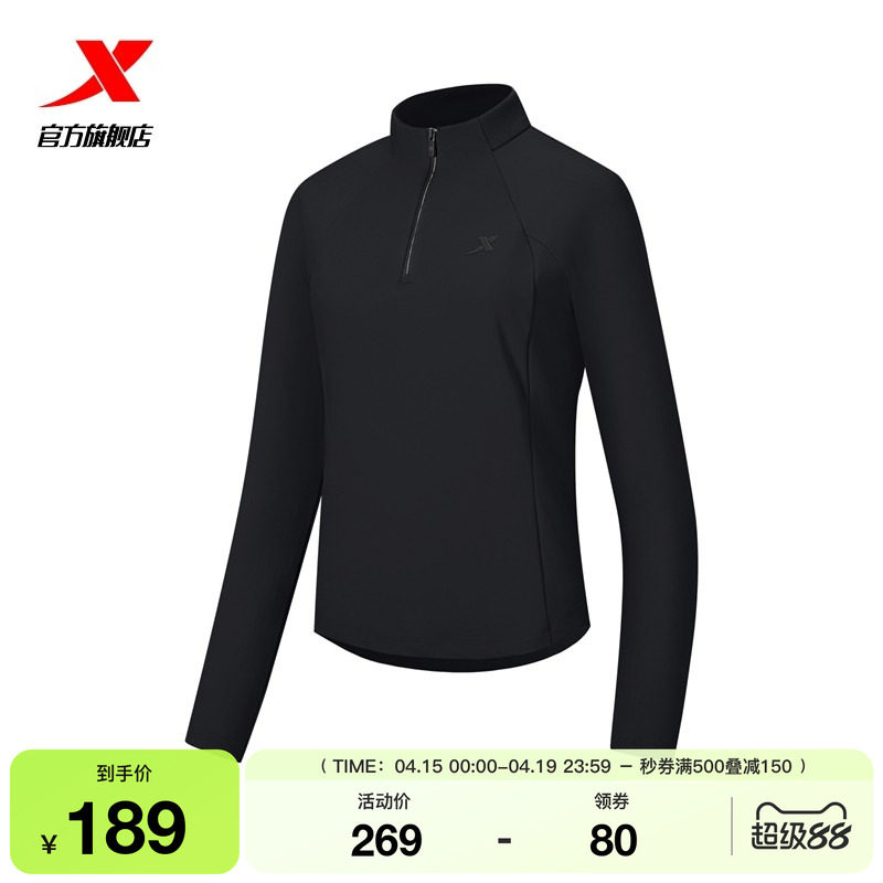 特步运动半拉链长袖T恤女款2026春季新款针织套头衫974128030011