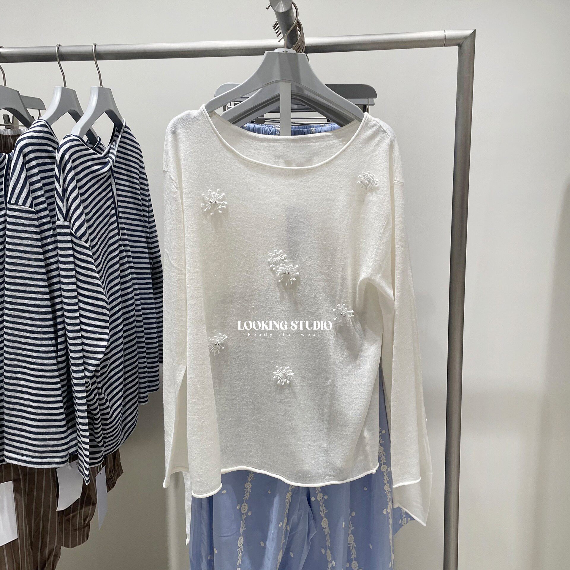Thas9i九亿 套头微透薄款白色防晒罩衫女宽松休闲慵懒风针织上衣