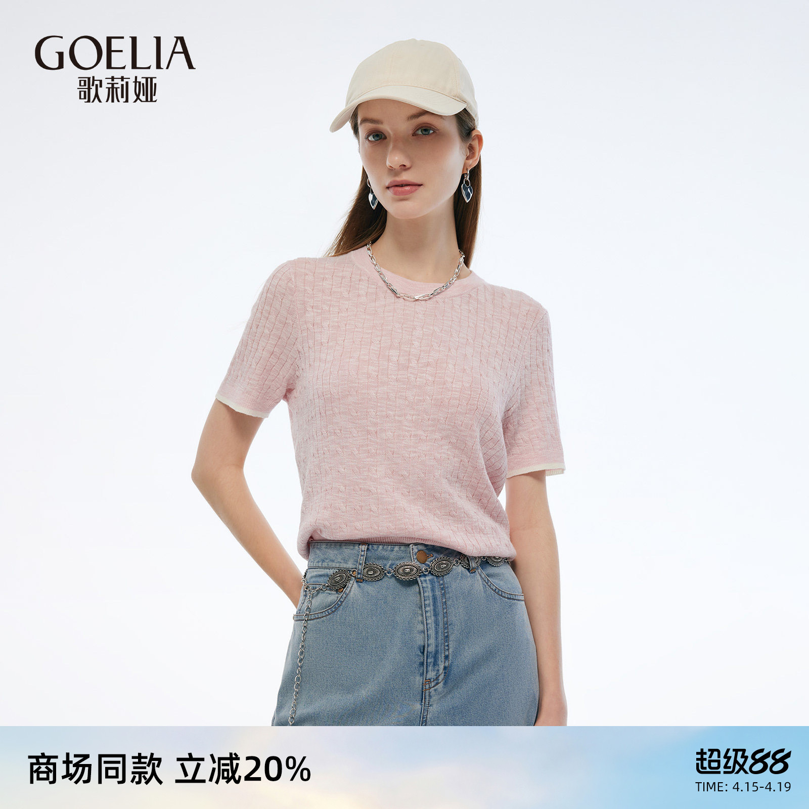乔万尼针织衫薄款女冰丝上衣打底圆领短款五分袖短袖镂空套头薄款