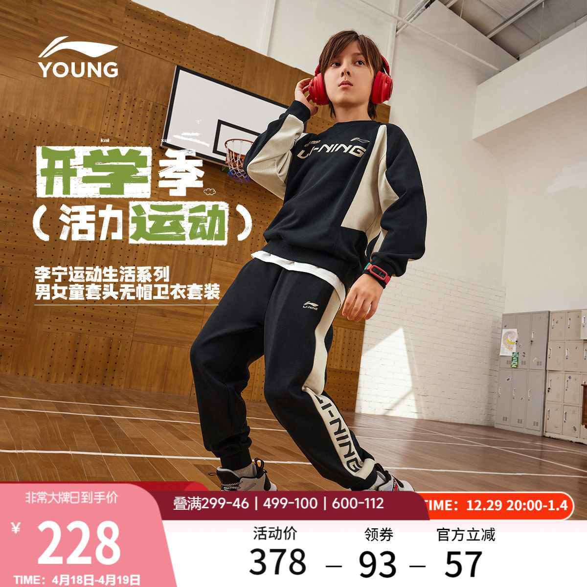 李宁童装套装男女小大童运动生活系列套头衫圆领休闲春夏针织童装
