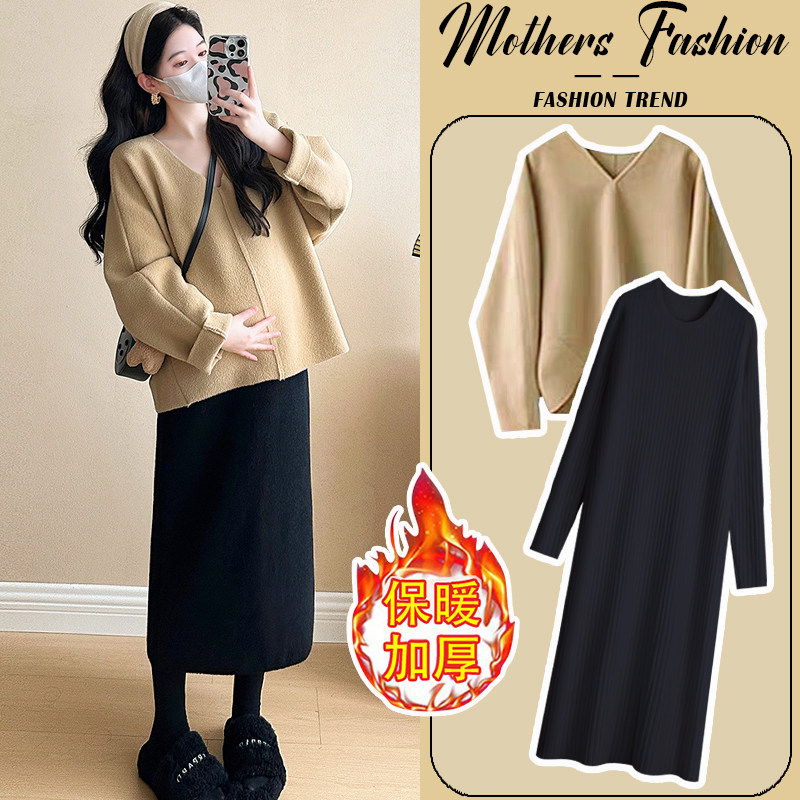 孕妇连衣裙套装秋冬2025新款毛呢加厚上衣针织打底毛衣裙两件套女