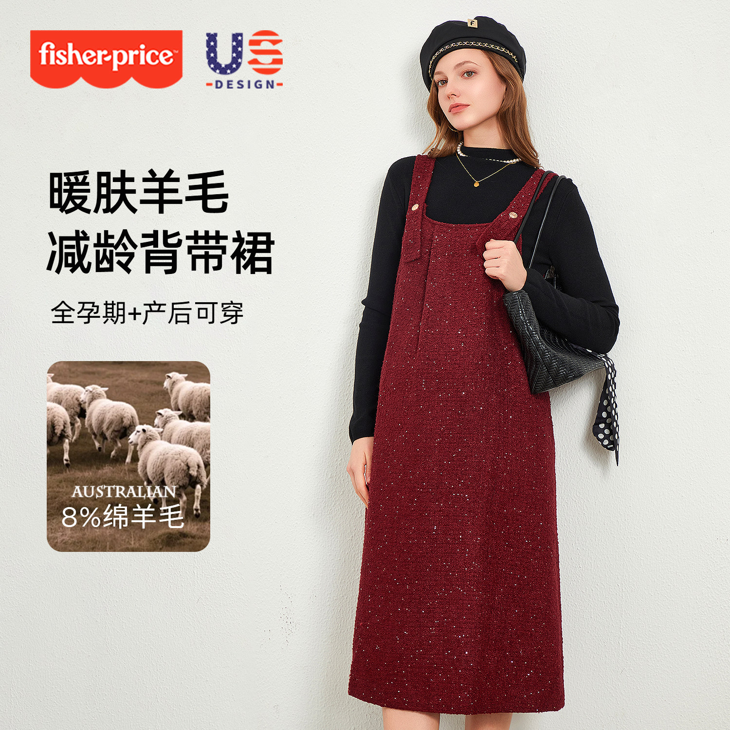 美国费雪孕妇秋冬2025新款时连衣裙冬季毛呢背带裙子两件套装冬装