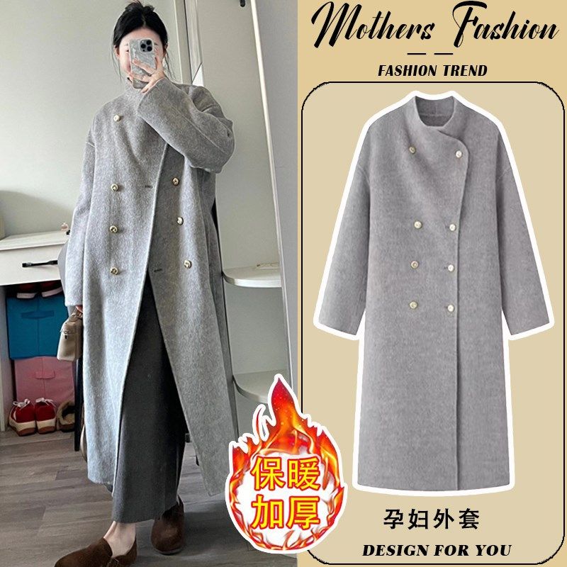 孕妇连衣裙外套秋冬2025新款灰色韩系高级感毛呢保暖大衣中长款女