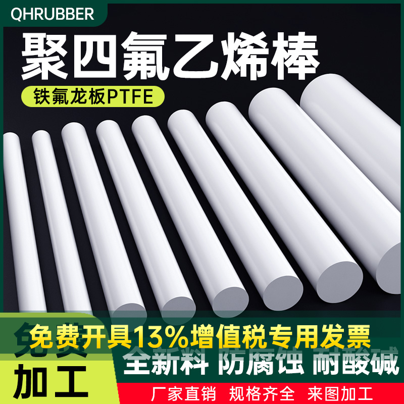 QH四氟棒铁氟龙棒聚四氟乙烯棒加工PTFE塑料王圆形棍新料圆柱棒料