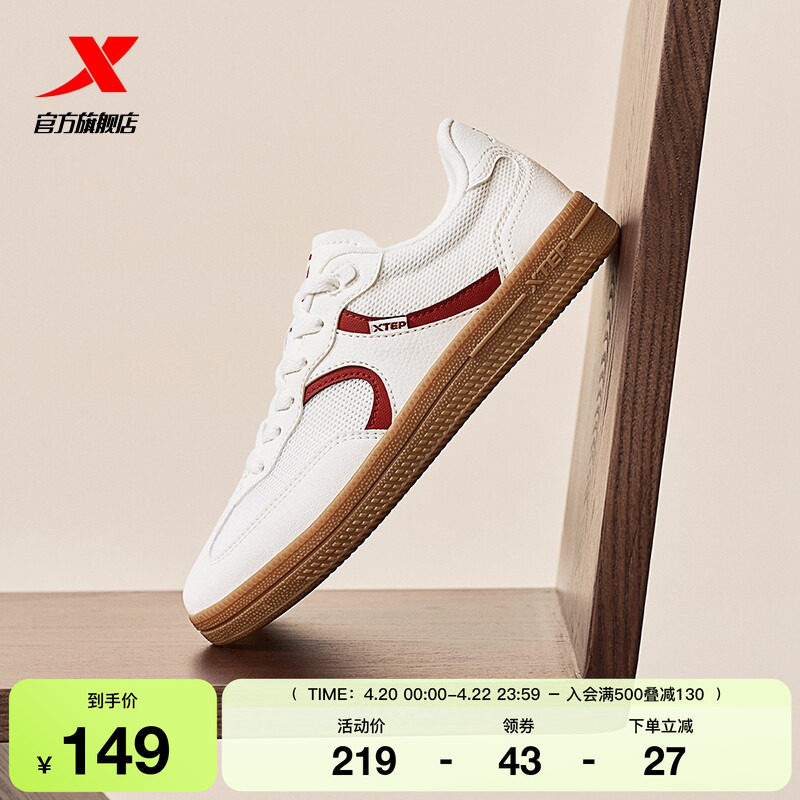 特步女鞋板鞋2026夏季新款官方旗舰女款运动鞋学生轻便软底小白鞋