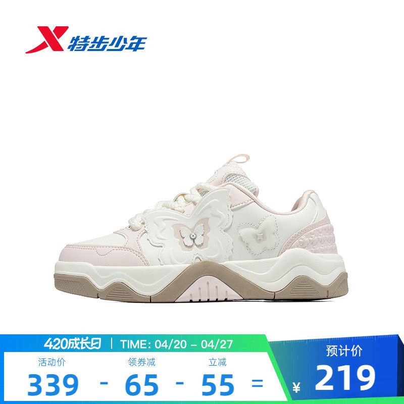 特步童鞋蝴蝶板鞋女童休闲鞋春夏季新款中大童学生缓震耐磨运动鞋
