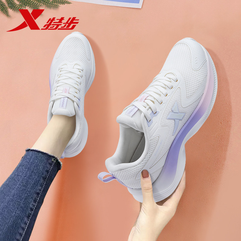 特步女鞋跑鞋中考学生体测跑步鞋女款夏季网面透气软底百搭运动鞋