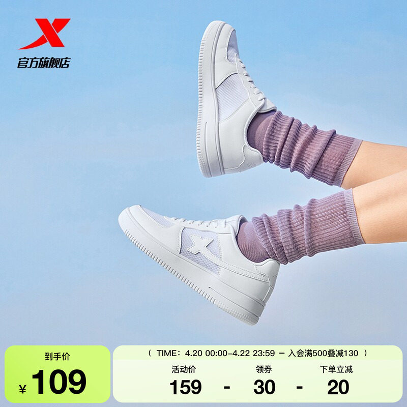 特步女鞋2026春夏空军一号板鞋学生小白鞋休闲鞋透气轻便运动鞋子
