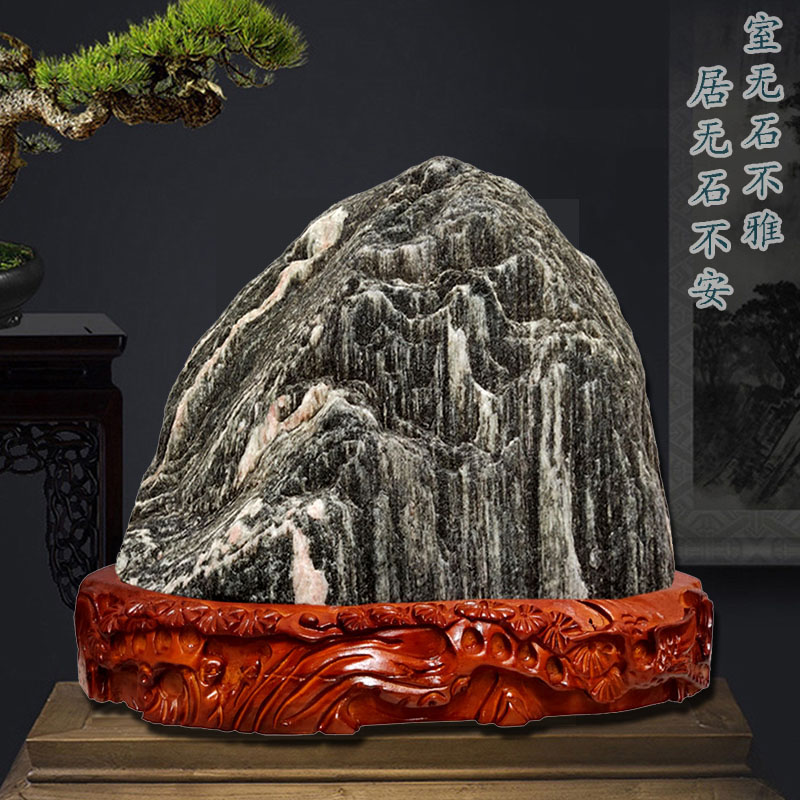 正宗天然泰山石敢当原石摆件实木靠山石头送领导长辈办公家居落地