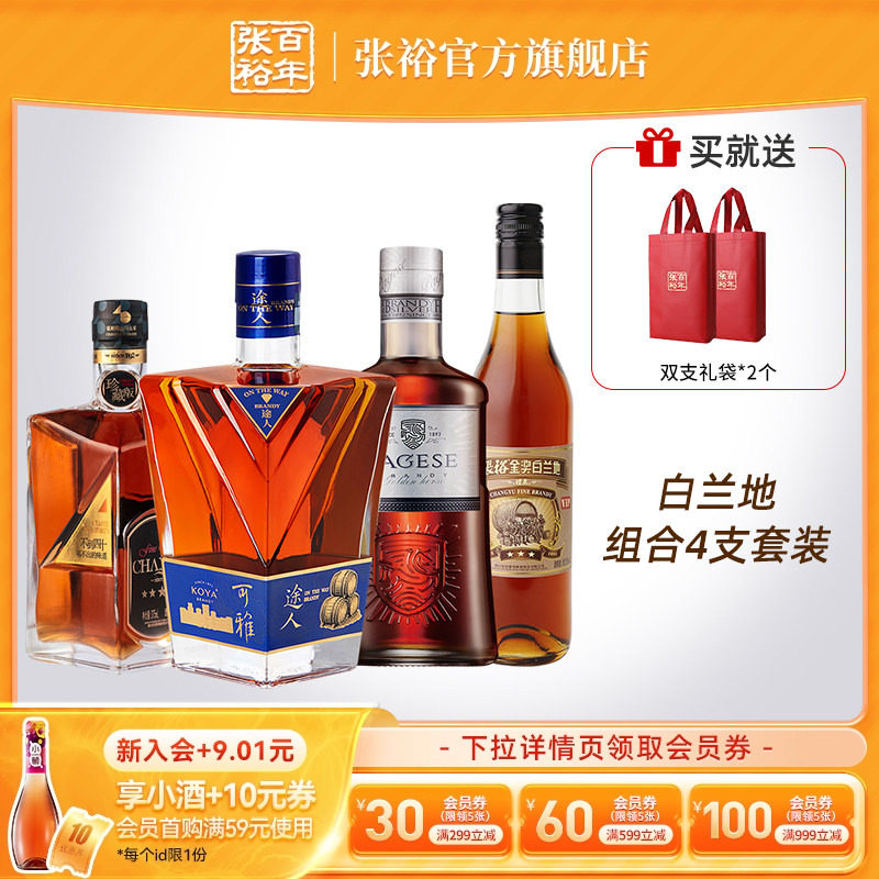 单双支】张裕珍藏版五星金奖白兰地40度洋酒男人四十礼盒装375ml