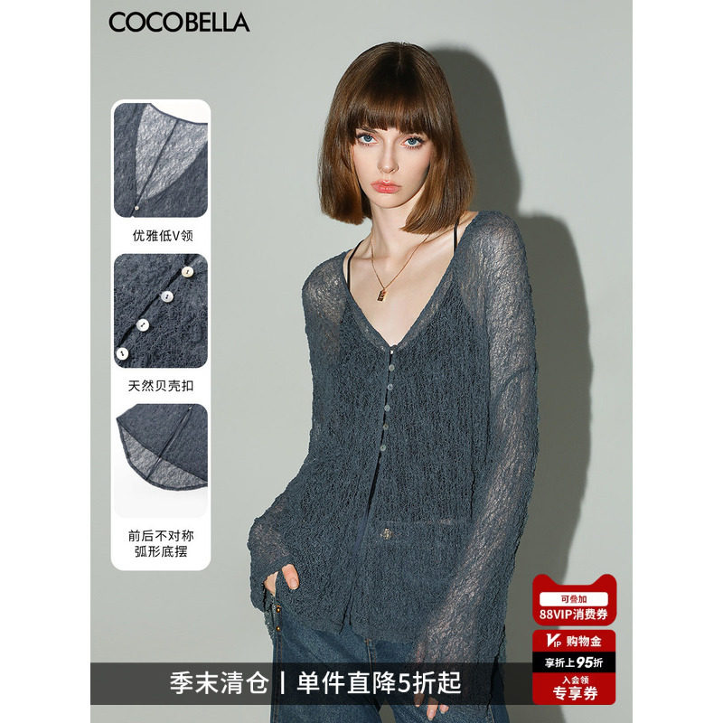 COCOBELLA精致镂空微透视针织开衫女人味慵懒风蕾丝打底衫SC0046