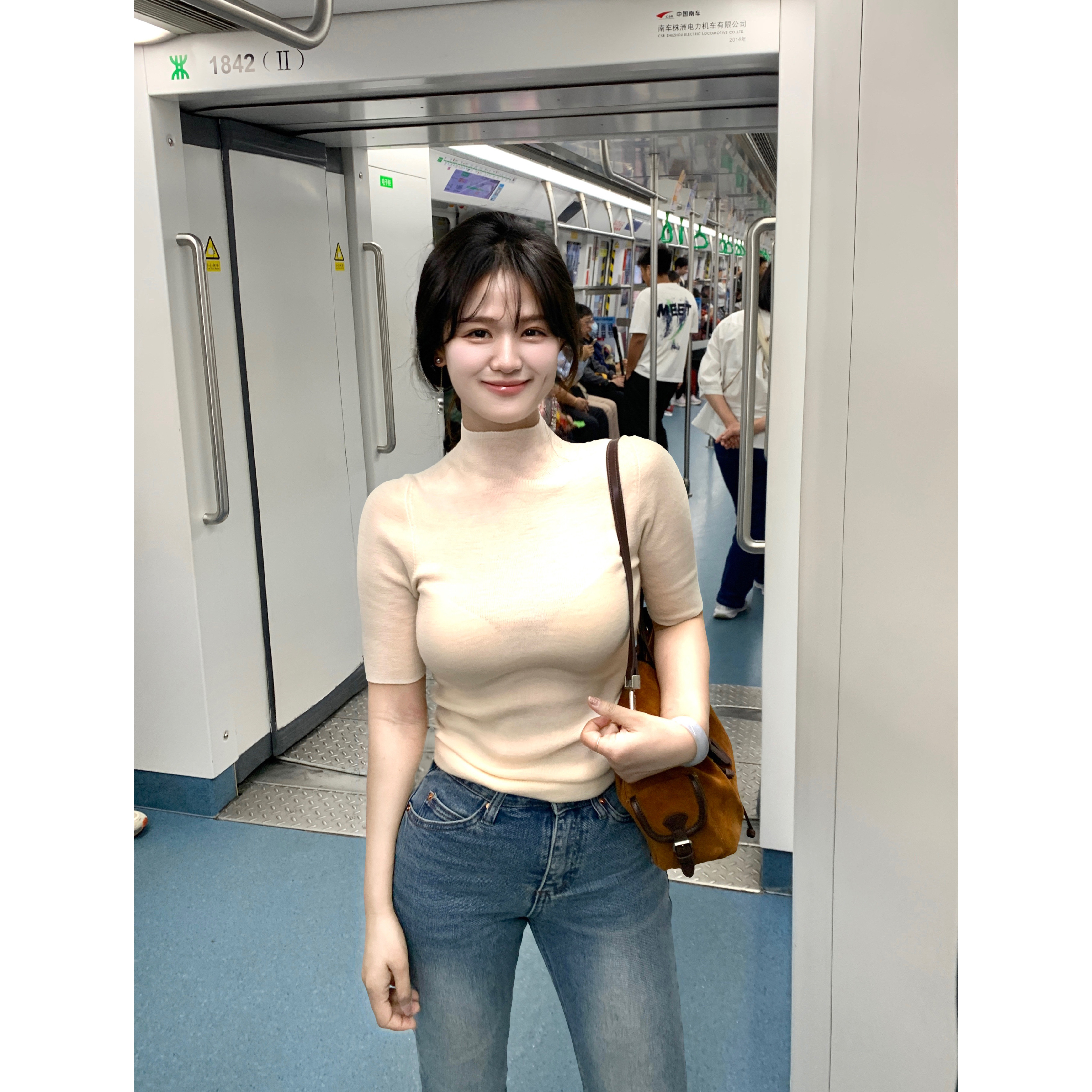 - 半高领针织衫五分袖