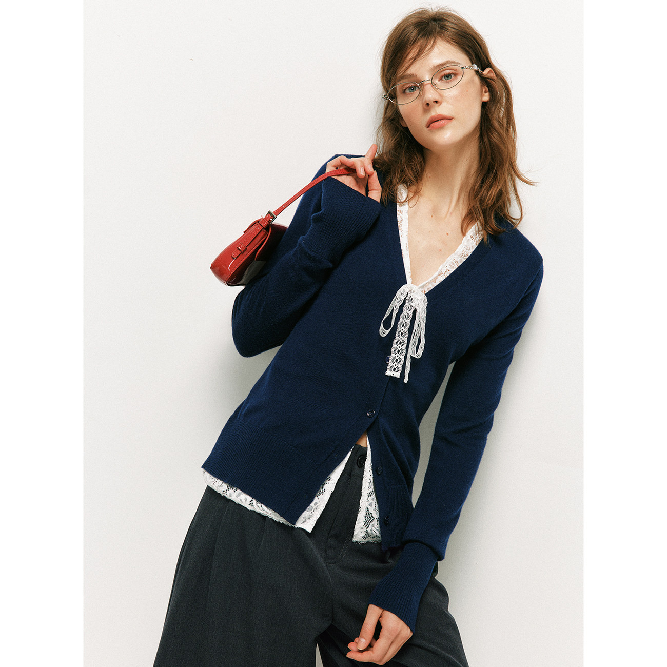 MCHIC| 法式女人的细节艺术~绝美!26春睫毛蕾丝亨利领羊毛针织衫