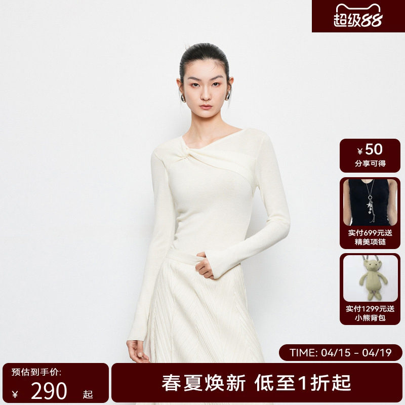 清冷温柔扭结设计感简约风长袖针织衫女人衫韩系氛围感早秋小上衣