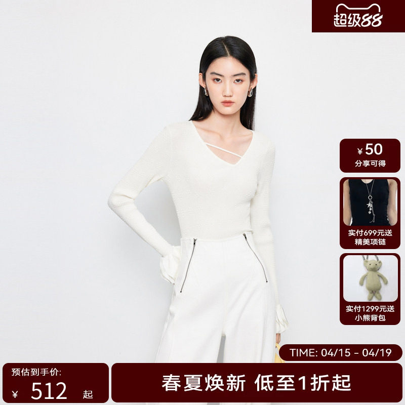 罗衣慵懒松弛感荡领飘带针织衫春女人味软糯修身内搭打底衫13132