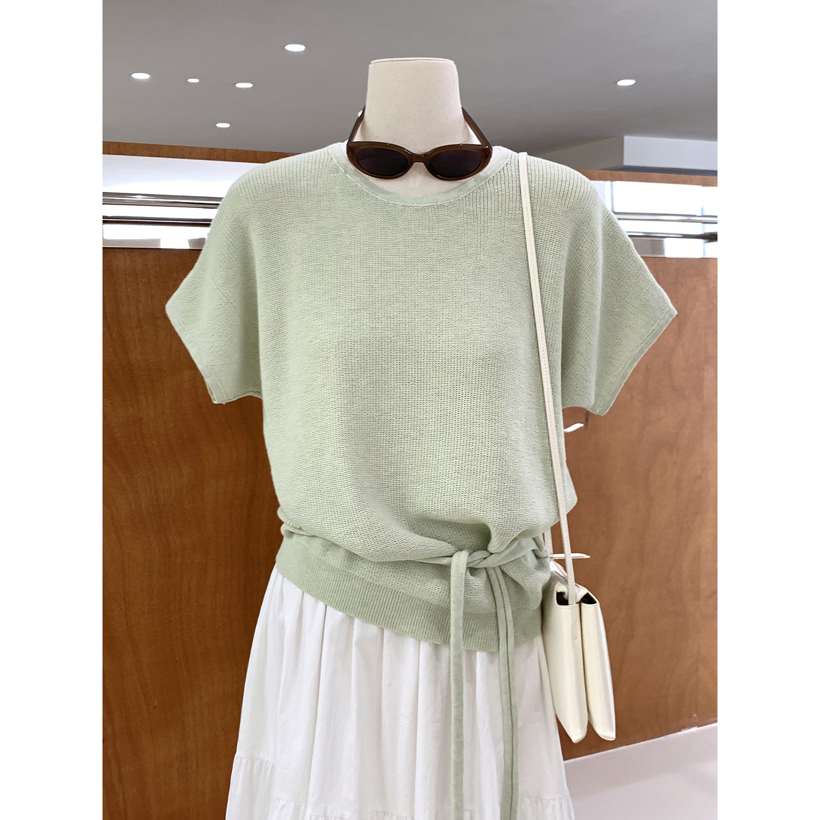 气质绑带掐腰显瘦坎肩蝙蝠短袖针织衫2026春夏新款通勤百搭女人衫