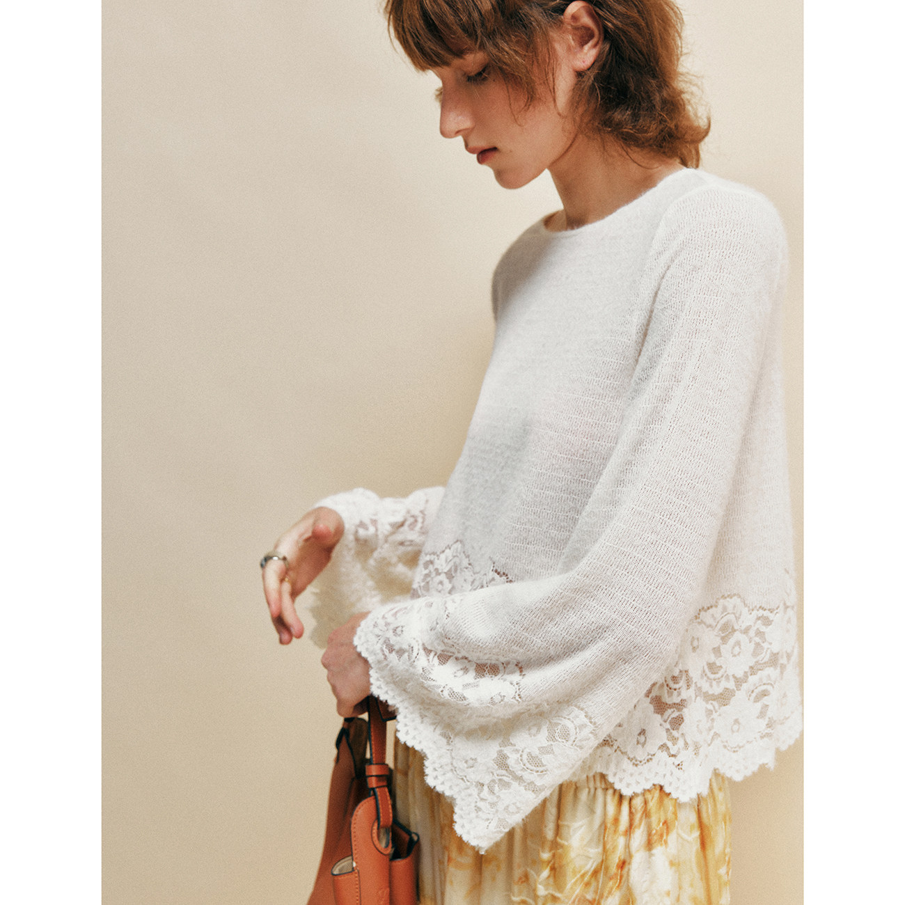 - 毛喇叭袖针织衫